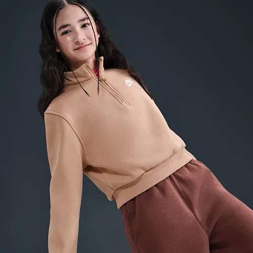 Nike Sportswear Club Fleece Big дитячі (Girls') 1/2-Zip Long-Sleeve Top колір коричневий