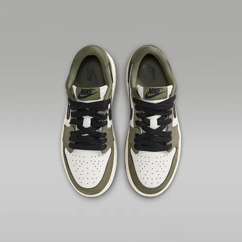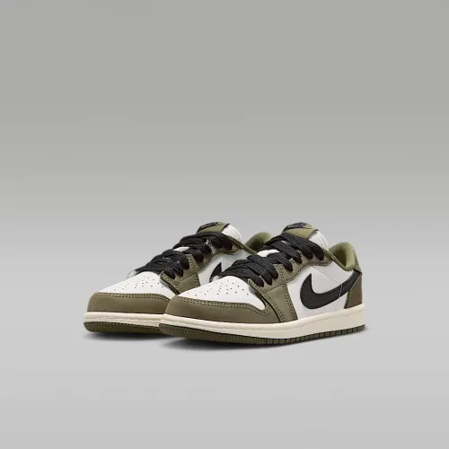 Nike Air Jordan 1 Retro Low "Medium Olive and Summit цвет белый" Little детские Кроссовки цвет зеленый