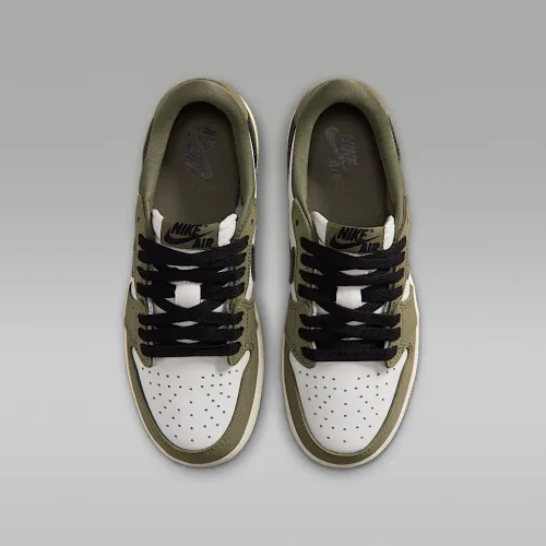 Nike Air Jordan 1 Retro Low "Medium Olive and Summit цвет белый" Big детские Кроссовки цвет зеленый