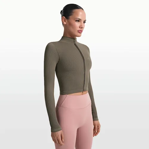 NikeSKIMS Ribbed Seamless женская Cropped Full-Zip Куртка цвет коричневый