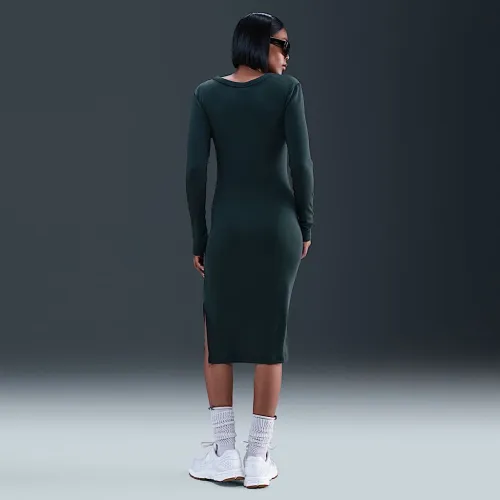 Nike Sportswear Chill Knit женская Tight Long-Sleeve Midi Mini-Rib Костюм цвет зеленый